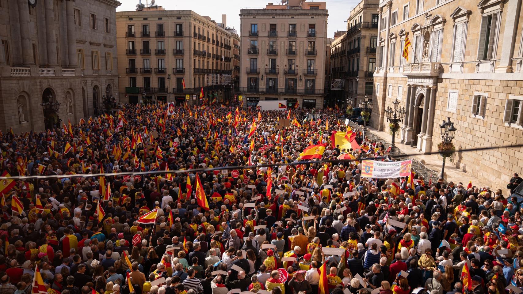 Miles de manifestantes han protestado contra la amnistía en la plaza Sant Jaume de Barcelona